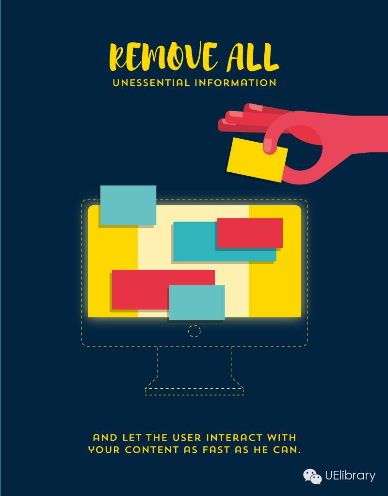 你要學會移除非必須的信息,讓用戶可以盡可能快地同你的網頁內容進行交互。