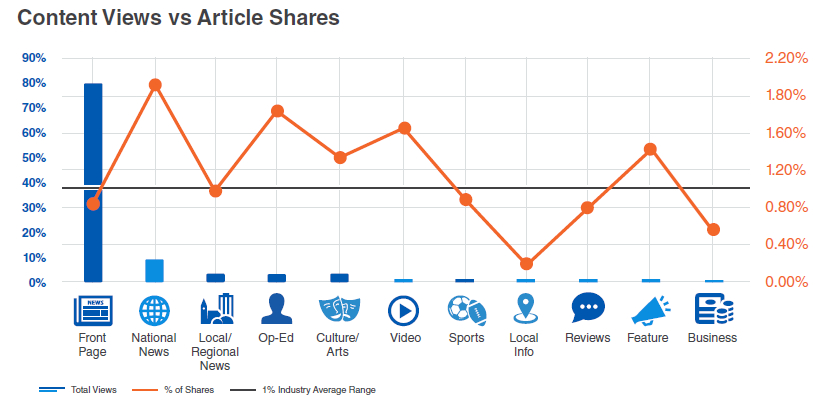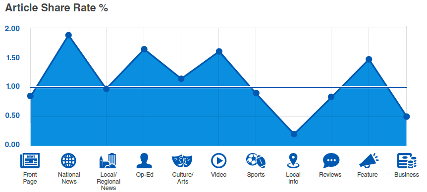 文章分享率介于1~2%之間,國內(nèi)新聞,社論,視頻等分享率較高