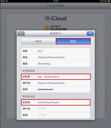 新網全球云郵IPAD POP3/IMAP協議設置方法