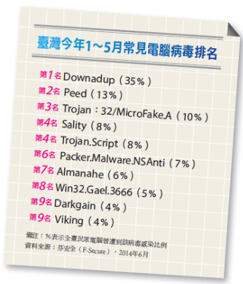 安全廠商日前針對(duì)臺(tái)灣遭受惡意軟件和病毒攻擊提出觀察,由于臺(tái)灣許多企業(yè)和個(gè)人仍在使用已經(jīng)停止更新的微軟XP操作系統(tǒng),針對(duì)XP的古董病毒Downadup也從2013年排名第六名的提升為今年1~5月臺(tái)灣受感染病毒最嚴(yán)重排名第一名,占比高達(dá)35%。